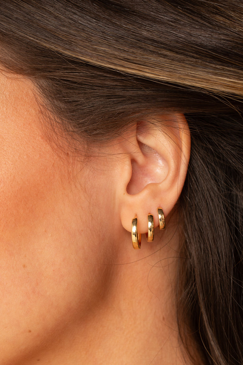 O mix perfeito para o seu dia a dia. Este trio de argolinhas é banhado a ouro 18k e traz praticidade e estilo. Leves e com fecho click sem tarraxa, são a escolha certa para quem não gosta de tirar os acessórios.